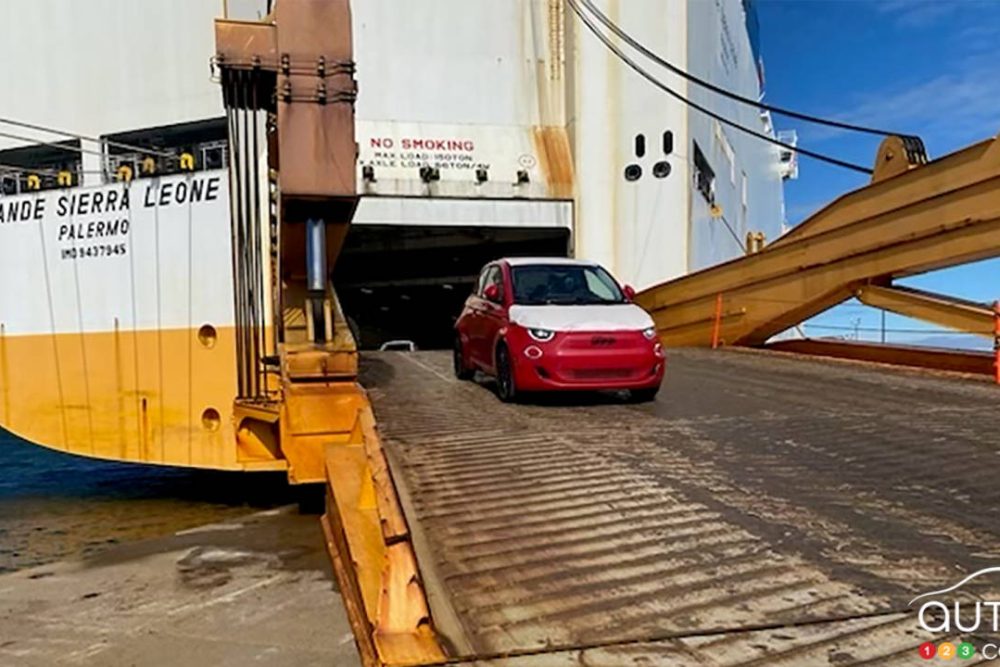 Les premières Fiat 500e 2024 sont maintenant au Canada. Le premier lot de voitures, construits en Italie, est arrivé à Halifax, en Nouvelle-Écosse, et sera bientôt disponible pour les consommateurs au Québec et en Colombie-Britannique.