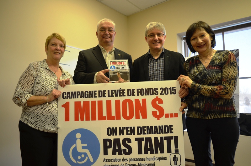 FINANCEMENT. Rien de moins. 1M$ est le montant que souhaite amasser l’Association des Personnes Handicapées Physiques de Brome-Missisquoi (APHPBM) lors de leur prochaine campagne de financement. Toujours sous le slogan On n’en demande pas tant, l’Association a prévu quatre activités pour la campagne 2015.