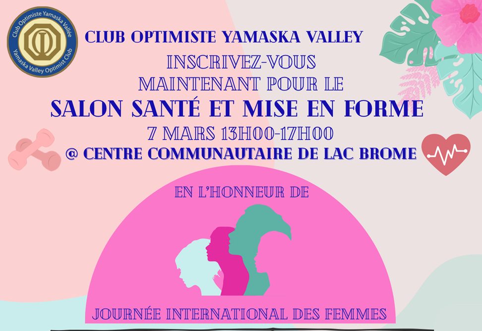 FEMMES. Le Club optimiste de la vallée de la Yamaska organise le salon Santé et mise en forme, en lien avec la Journée internationale de la femme, le 7 mars prochain. L’événement se tiendra de 13h à 17h au Centre communautaire de Lac-Brome.