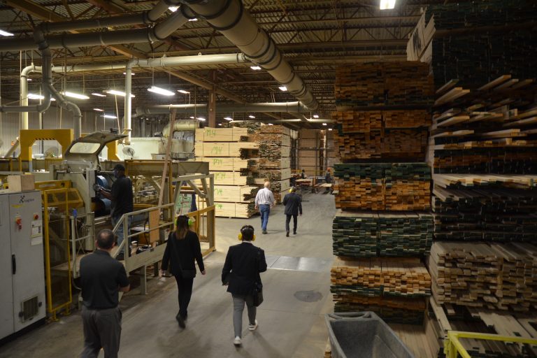 La mairesse de Cowansville, Sylvie Beauregard, a félicité l’équipe de Planchers des Appalaches, lors de la visite organisée la semaine dernière.