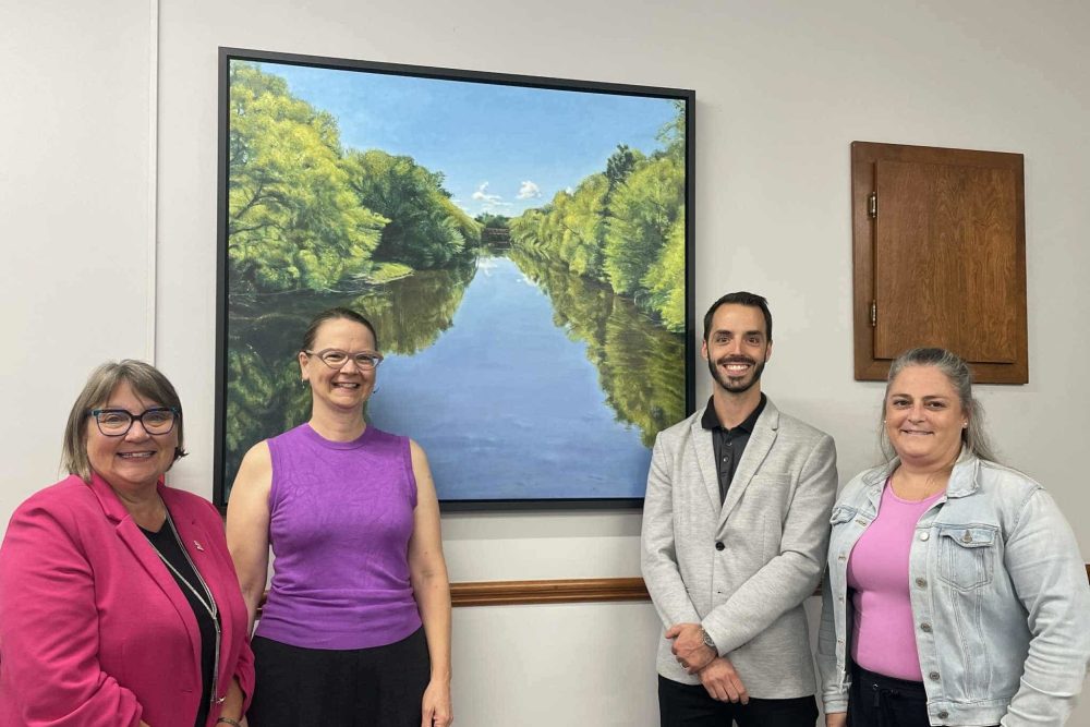 ART. La Ville de Cowansville a dévoilé l’œuvre d’art choisie à la suite de l’appel de dossiers de l’an dernier en lien avec la collection d’art public Marguerite-Valois-Maddocks. Il s’agit de Nos liens à la rivière de l’artiste Kylie Sandford.