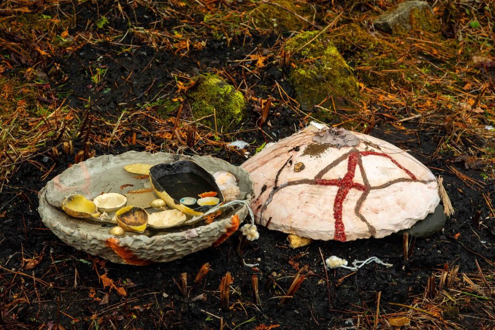 L’exposition extérieure compte entre autres sur une œuvre flottante in situ de l’artiste, qui est installée sur un étang.