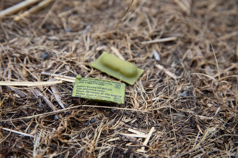 Mme Gagnier précise que l’endroit est idéal pour déposer plusieurs appâts vaccinaux, car le raton laveur est reconnu pour aller souvent aux mêmes endroits pour déposer ses selles, et ces endroits sont souvent utilisés par plus d’un individu de la même espèce. « C’est comme une toilette commune », mentionne-t-elle.