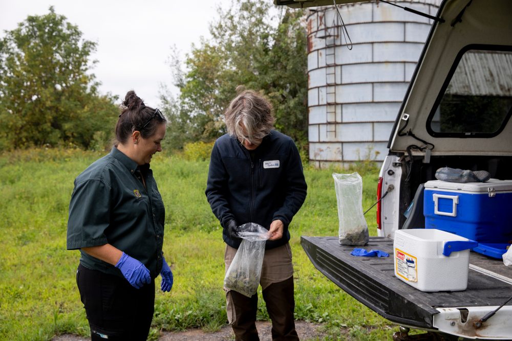 « C’est sûr que c’est un bon spot. S’il y a des berges et que tu sais que ça passe, tu mets des vaccins, et c’est sûr qu’ils vont être trouvés par des ratons », affirme Guillaume Tremblay, technicien de la faune au MELCCFP et coordonnateur des opérations contre la rage du raton laveur sur le terrain.