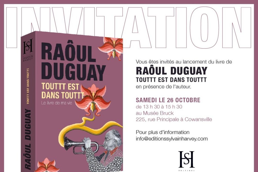 Cet ouvrage, publié par les Éditions Sylvain Harvey, est déjà en librairie partout au Québec, en plus d’être disponible en ligne. Son lancement aura lieu le samedi 26 octobre, de 13h30 à 15h30, à la Maison Bruck, 225 rue Principale, à Cowansville.