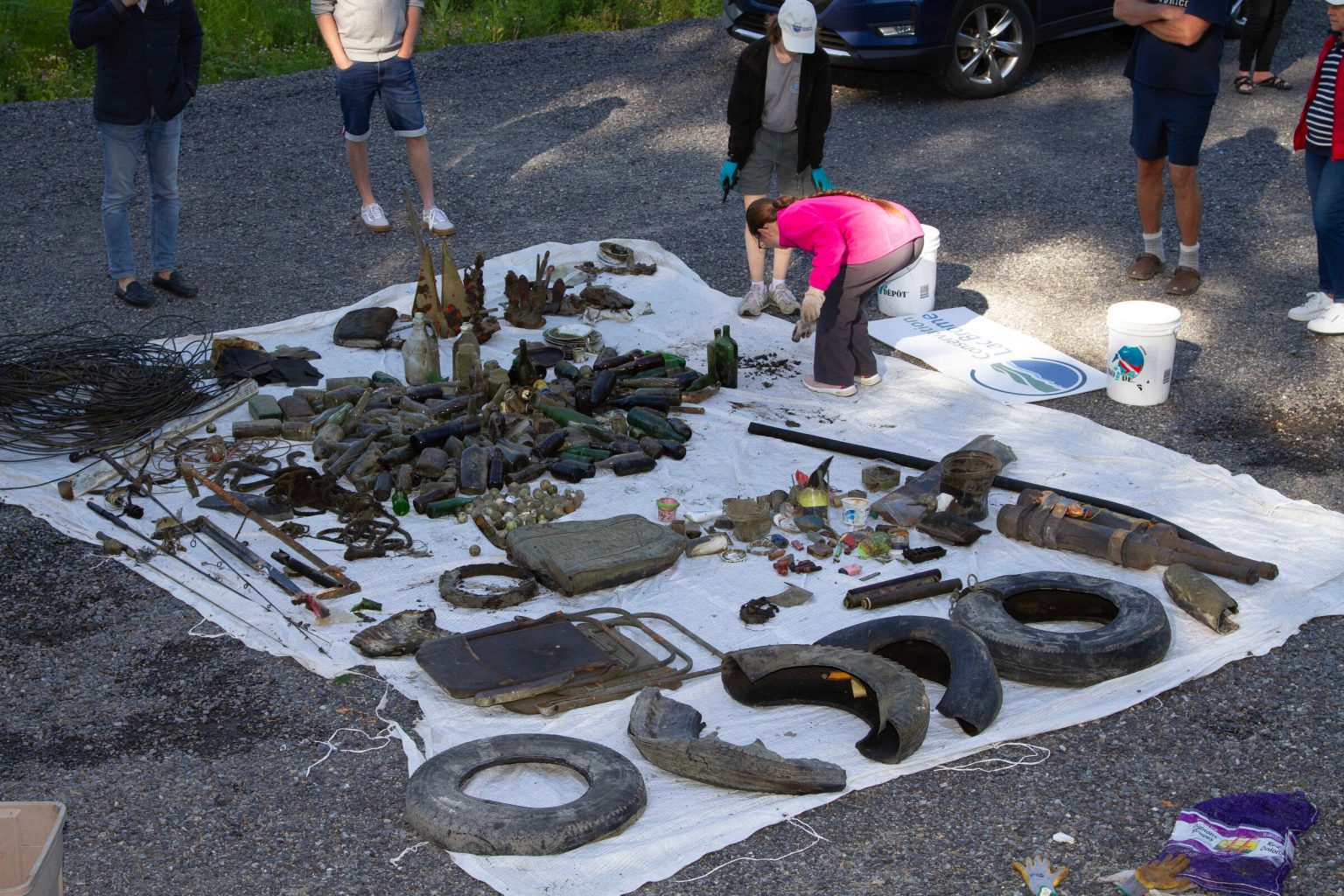 Plusieurs items ont été repêchés. Quatre ancres, trois cordages, des tuyaux, un fil de télécommunications de plusieurs dizaines de mètres, une cinquantaine de bouteilles, des canettes, des cannes à pêche, des balles de golf, des cartouches de balles de fusil et des pneus font partie de la liste des objets qui ont pu être retirés du lac.