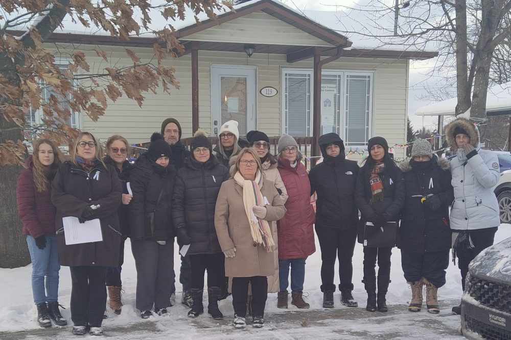 Le Centre femmes des Cantons a tenu une action symbolique, cet après-midi, dans le cadre de la Journée nationale de commémoration et d’action contre la violence faite aux femmes. Cet événement visait à perpétuer le souvenir des 14 femmes tuées à la Polytechnique le 6 décembre 1989 et celui des victimes des féminicides perpétrés au cours de l’année qui s’achève. Des boules de Noël illuminées portant le nom de chacune des victimes ont été installées aux abords de l’établissement pour l’occason. Les noms des victimes ont par ailleurs été mentionnés à voix haute par la quinzaine de participantes avant la tenue d’une minute de silence en leur mémoire. (C.H.) (Photo: gracieuseté)