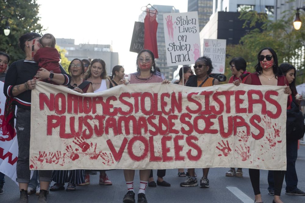 Les organisateurs de la manifestation montréalaise affirment qu’aucun ordre de gouvernement n’a mis en œuvre les recommandations de l’enquête nationale de 2019 sur les femmes et les filles autochtones disparues et assassinées, qui déclarait que la situation était critique.